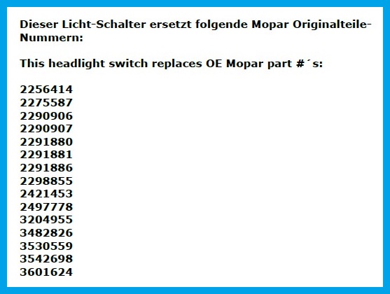 Headlight Switch for 1970-74 Plymouth Duster and Scamp - 8 Terminals with 1-5/8" Rheostat