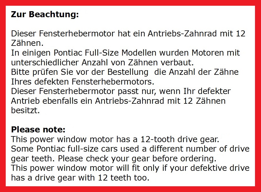 Fensterheber-Motor für 1972-77 Pontiac Bonneville - Fenster vorne/rechte Seite